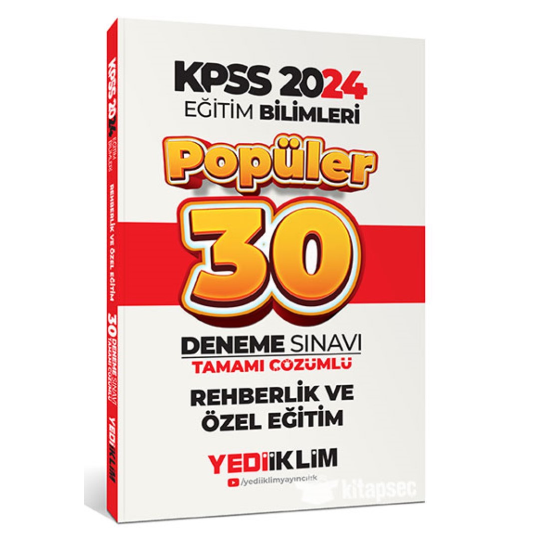 2024 KPSS Eğitim Bilimleri Rehberlik Özel Eğitim Popüler Tamamı Çözümlü 30 Deneme Yediiklim
