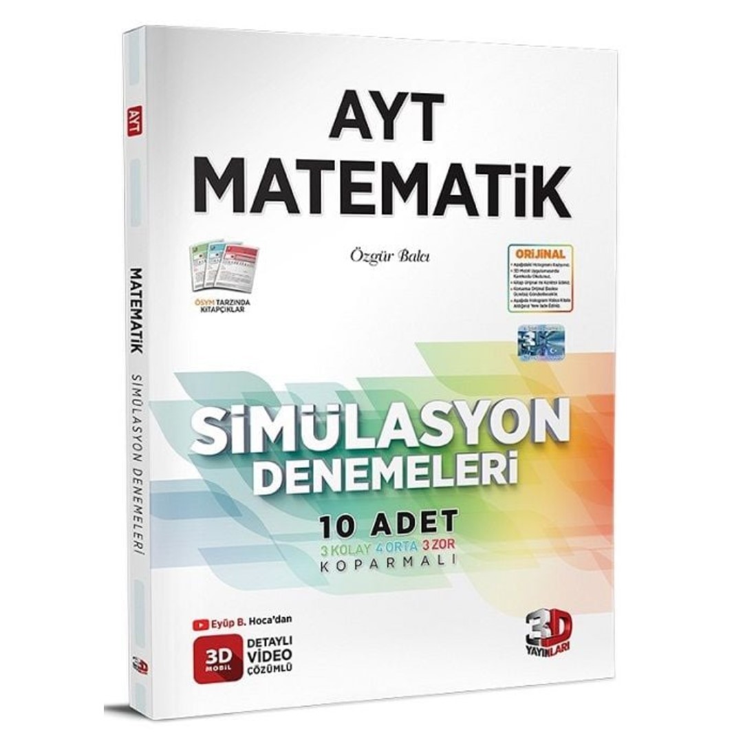 3D Yayınları YKS AYT Eşit Ağırlık Simülasyon 3 Deneme Video Çözümlü 3D Yayınları