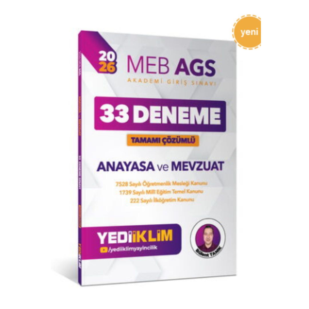 Yediiklim Yayınları 2026 MEB AGS Anayasa ve Mevzuat Tamamı Çözümlü 33 Deneme