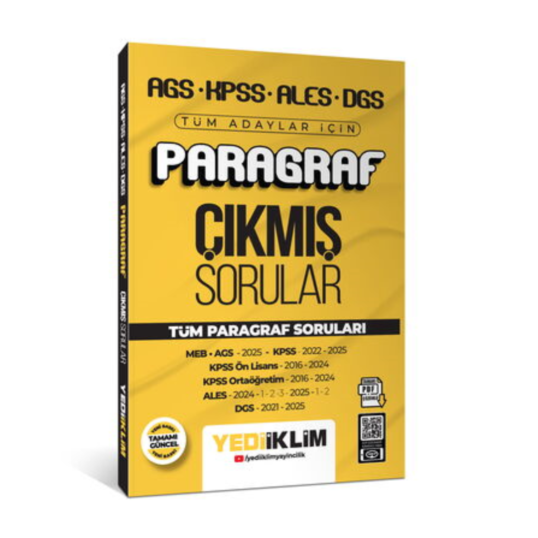 AGS KPSS ALES DGS Tüm Adaylar İçin Paragraf Tamamı PDF Çözümlü Tüm Paragraf Soruları Çıkmış Sorular – Yediiklim Yayınları