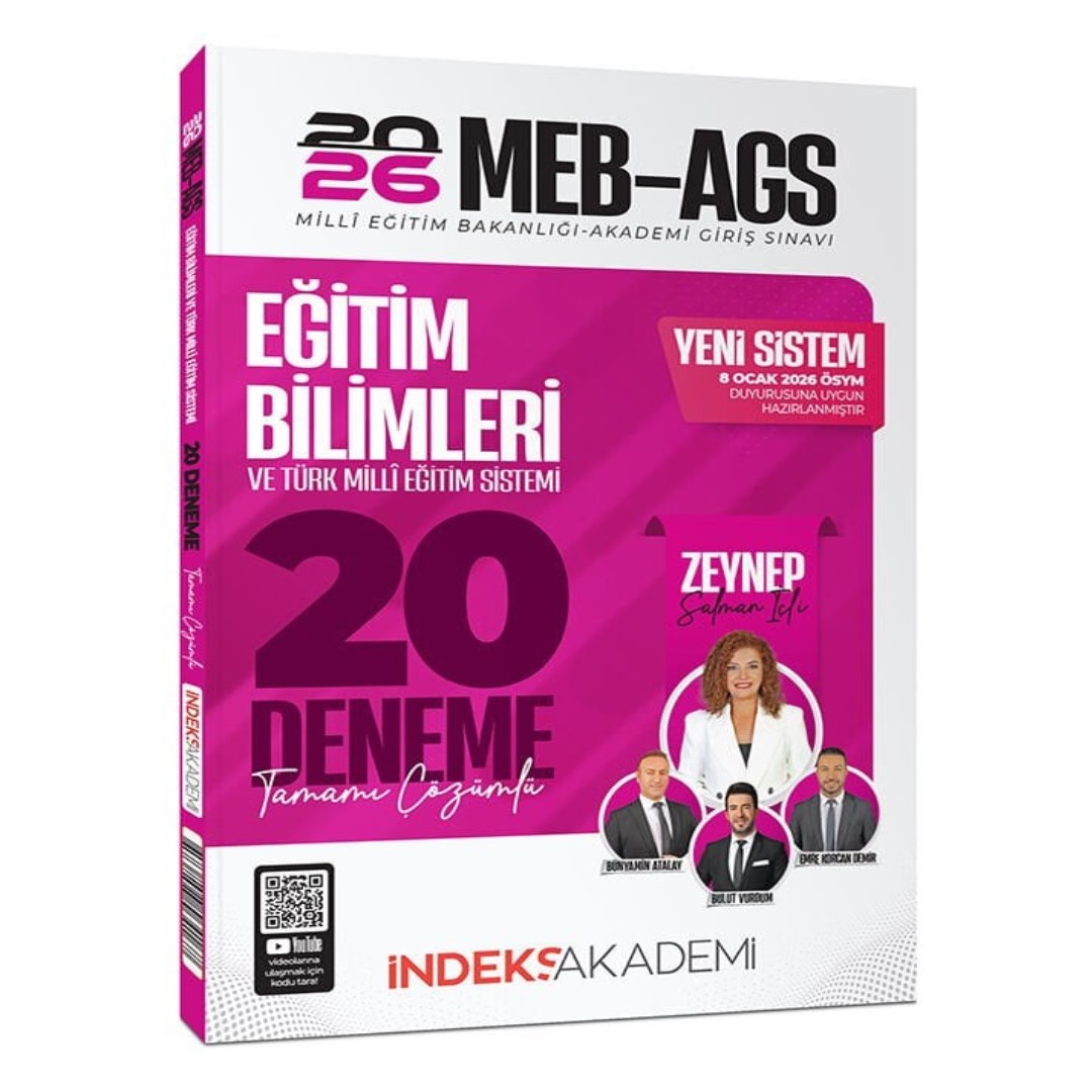 İndeks Akademi 2026 MEB-AGS Eğitim Bilimleri ve Türk Milli Eğitim Sistemi 20 Deneme Çözümlü – Zeynep Salman İçli İndeks Akademi Yayıncılık