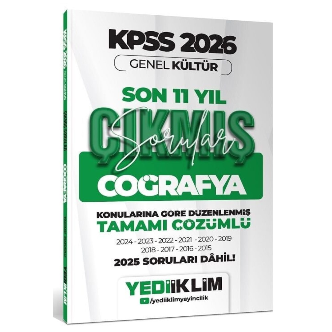 Yediiklim KPSS Coğrafya Çıkmış Sorular Son 11 Yıl Konularına Göre Çözümlü Yediiklim Yayınları